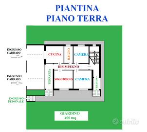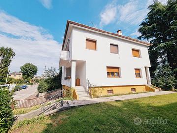 Completano l'immobile un giardino di proprietà, che si estende su tre lati della casa per circa 400 mq e, al piano seminterrato, due cantine finestrate di circa 16 mq e da due comodi garage di 22 mq, collegati internamente.