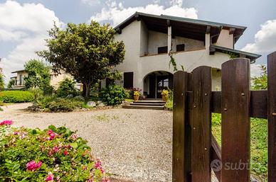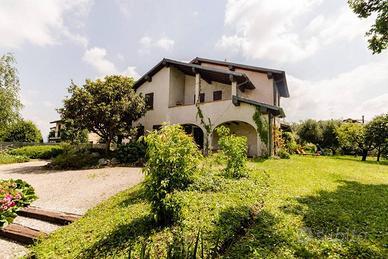 Rif:3322 (126921545) - A soli 30 minuti da Milano e 20 minuti da Lecco, immersa nella quiete di un elegante contesto residenziale ma comoda con tutti i principali servizi, proponiamo affascinante villa indipendente circondata da 2.000 mq di giardino pianeggiante, curato e piantumato con ulivi decennali e alberi da frutto. Una proprietà dal fascino autentico, dove lo stile di campagna incontra spazi generosi e perfettamente distribuiti. La villa si sviluppa su tre livelli e accoglie con una splendida zona giorno impreziosita da cotto originale e travi a vista. Il grande salone con camino diventa il cuore della casa, perfetto per momenti di relax e convivialità. La sala da pranzo e la cucina abitabile in muratura, dal sapore country, completano un ambiente caldo e raffinato. Le ampie vetrate conducono al portico affacciato sul verde, creando una naturale continuità tra interno ed esterno. La zona notte ospita quattro camere da letto, di cui due con bagno privato, oltre a ulteriori servizi, terrazzi panoramici e solarium. Al piano seminterrato troviamo una spaziosa taverna con biliardo, cantina vini, lavanderia e locali accessori ideali come studio, palestra o area hobby. Spazi esterni da vivere tutto l'anno: - Giardino regolare e pianeggiante - Area barbecue con forno pizza - Ricovero attrezzi e legnaia - Box doppio e area parcheggio - Possibilità di realizzare una piscina Una soluzione perfetta per chi desidera privacy, indipendenza e ampi spazi, ideale anche per due nuclei familiari grazie alla possibilità di facile frazionamento. - Classe: F - IPE: 172.40 kWh/mq anno