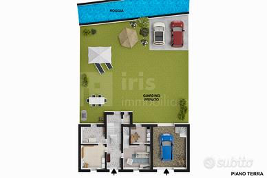 Il vero fiore all'occhiello è il giardino privato di circa 250 mq, un'oasi di pace dove potrai rilassarti e magari coltivare il tuo orto (l'acqua della Roggia è a disposizione). L'accesso carrabile avviene attraverso un porticato di proprietà, che garantisce un comodo e riservato posto auto.