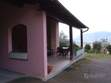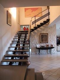 Villa unifamiliare di Mq 300, panoramica e luminosa con annesso giardino pertinenziale di Mq.5000. L'immobile si sviluppa su due livelli con annesse 3 cantine e locale tecnico al piano seminterrato, con accesso dall'esterno. Al piano terra abbiamo un'ampia cucina con camino, salone doppio con uscita su ampio terrazzo coperto, che accede in una parte del giardino. Ampio vano pluriuso di 48 Mq circa con accesso dall'interno e dall'esterno, bagno, garage e ampio portico; al piano superiore abbiamo quattro grandi camere da letto, due bagni e ampio terrazzo panoramico con affaccio sulla città. Ottimo stato di conservazione, in quanto ristrutturato di recente con il superbonus e pre risalente cappotto parziale, coibentazione tetto, sistema di riscaldamento con pompa di calore di calore e caldaia.