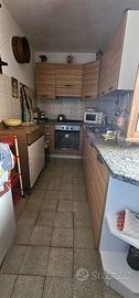 Al piano terra troviamo un ampio ingresso, un luminoso soggiorno, tinello con cucinino adiacente, una camera matrimoniale e un bagno