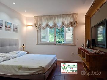 Codice 2892 A Palermo - Affittasi Appartanvilla Casa Vacanza in Contesto Signorile Si affitta x uso transitorio splendida appartanvilla Arredata e corredata di tutto il necessario, situata in un contesto tranquillo e residenziale, a soli 2 km dalla spiaggia di Mondello e comodamente collegata al centro città di Palermo anche tramite mezzi pubblici. Descrizione dell'immobile : Ingresso con ampio giardino privato dotato di angolo barbecue e forno a legna per pizze, porticato rustico che anticipa l'ingresso principale, cucina-soggiorno con cucina in muratura, comunicante con il porticato esterno, salone con camino dotato di comodo divano letto, con zona notte parzialmente separata dove è situata una camera matrimoniale, bagno con doccia duplex, completamente ristrutturato , aria condizionata, servizio di portineria H24