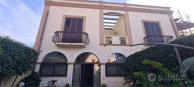 La villa di circa 300mq, si sviluppa su due elevazioni con un giardino di circa 150m, al piano terra è composta da ampia zona giorno con cucina-soggiorno, wc, camera da letto, cameretta con cabina armadio. Accedendo al primo piano troviamo una cameretta adibita a studio, una camera da letto, ripostiglio, bagno con vasca, un ampio salone con accesso ad una verandina esterna, infine una seconda cucina.