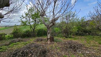 L'immobile è circondato da un'ampia corte esterna di circa 990 mq, con una parte a prato e alberi da frutto, tra cui un uliveto. La proprietà dispone di parcheggio su due lati, con spazio per due o più auto.
