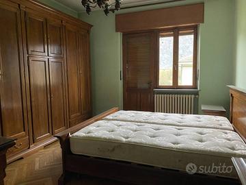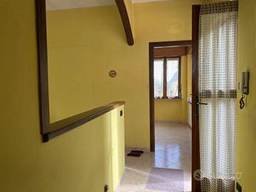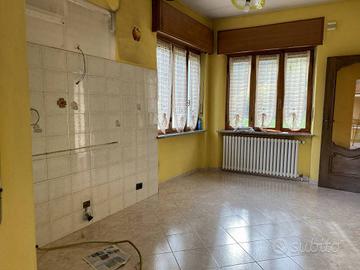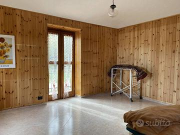 Rif:931 (124535043) - Casa indipendente su due livelli, libera su quattro lati, con cortile privato e ampi spazi esterni. L'ingresso, pedonale e carraio, conduce al cortile interno da cui si accede all'abitazione. Una scala esterna porta al piano primo, dove si apre un accogliente soggiorno con caminetto e porta finestra che dà accesso a un secondo balcone affacciato sul giardino posteriore. La cucina è abitabile e dispone di uscita su un ampio terrazzo ideale per pranzi e momenti di relax all'aperto. Completano il piano un disimpegno, un bagno con doccia e una camera matrimoniale. A seguire, si trovano un secondo salone (utilizzabile anche come sala da pranzo), un piccolo disimpegno e una cameretta con balconcino. Dal disimpegno del piano primo si accede, tramite scala interna, al piano terreno, composto da un ulteriore disimpegno, tinello con zona lavanderia, bagno e camera da letto, con accesso diretto anche dal cortile interno. Il piano terreno, grazie alla sua disposizione e agli spazi funzionali, può essere comodamente utilizzato come tavernetta o zona giorno accessoria. La parte abitativa al Piano Terra, inoltre, può anche essere utilizzata come mini alloggio o come studio/ufficio, avendo ingresso indipendente dal sovrastante abitativo. Il piano primo è stato ristrutturato intorno al 2000/2001. Gli infissi sono in legno con doppio vetro, mentre in cucina sono presenti doppi serramenti. Il riscaldamento è alimentato a GPL, il metano è già presente sulla strada. Completano la proprietà un box auto doppio, un ripostiglio e tre cantine. L'immobile è circondato da un cortile frontale con area giardino e dispone di un appezzamento di terreno sul retro, accessibile da un secondo cancello carraio. Si segnala che il viale laterale è gravato da una servitù di passaggio per consentire l'accesso alle proprietà confinanti. Nonostante la posizione tranquilla e