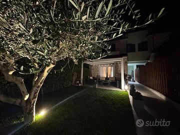 A Valenza, in un meraviglioso contesto di verde, si propone all'acquisto Villa a schiera di testa , completamente ristrutturata con finiture di gran pregio, parquet in ogni ambiente. Giardino all'ingresso e altro sul retro, per complessivi 220 mq circa. All'abitazione si può accedere o dal giardino o dal garage di 55 mq, fornito di basculante elettrica .Dall' ingresso principale, si accede direttamente nel soggiorno con magnifica boiserie, camino e grande porta finestra con uscita sul giardino stesso. Leggermente sopraelevata si trova la sala da pranzo, adiacente alla cucina abitabile, con uscita sul giardino posteriore. Con un'elegante scala , si sale al piano superiore dove vi è una prima camera matrimoniale con balcone panoramico e bagno con finestra e doccia, un comodo disimpegno ,conduce all'altra camera matrimoniale , ampia cabina armadio con finestra, volendo terza camera singola e infine il bagno principale con splendida doccia( walk in )completa la casa una taverna di 50 mq con camino, angolo cucina e bagno.La Villa è munita di impianto di allarme, domotica, aria condizionata, infissi con taglio termico.. Elegante e accogliente , grazie ai suoi numerosi comfort Nel prezzo, sono compresi gli arredi fissi, l'intera cucina di gran marca e la veranda nel giardino.Per info Maria Teresa