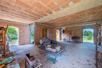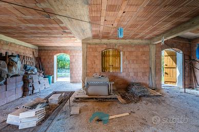 La disposizione interna prevede un open space al piano rialzato di circa 80 mq allo stato grezzo con balcone perimetrale; al piano seminterrato un garage di 40 mq ed un secondo ambiente di circa 60 mq con bagno. Inoltre c'è la possibilità di poter collegare i due piani dell'immobile con una scala interna.