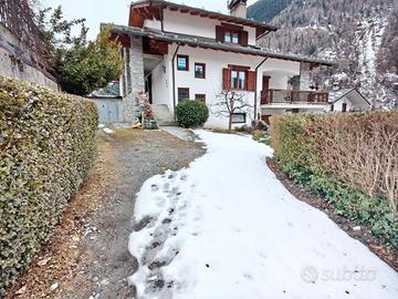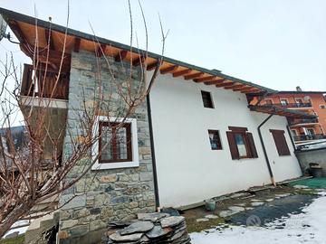Valpelline centro, villino indipendente bifamiliare con ampi spazi interni ed esterni, ideale come prima casa o casa per due nuclei familiari. L'immobile si sviluppa su più livelli per circa 302 mq di superficie catastale escluso aree scoperte e si compone di: Piano terra (pertinenze): 1 garage, 2 depositi, 2 cantine, 1 lavanderia, 1 bagno. Appartamento 1 - primo piano (7 vani): 2 camere da letto, 2 bagni (uno con vasca, predisposto per idromassaggio), grande soggiorno luminoso, cucina abitabile, balcone che si sviluppa su due lati della casa (una parte ampia vivibile, una a parallelo facciata). Appartamento 2 - secondo piano mansardato (circa 5 vani): 2 camere da letto, 2 bagni, ampio soggiorno, cucina.