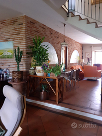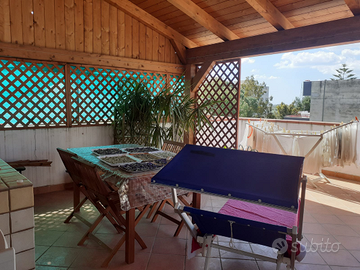 La casa si trova in via Costituzione 15 a Palagiano, nella zona del mercato settimanale. È situata a ridosso dell'uscita di Viale Chiatona, da cui è possibile raggiungere il mare in soli 5 minuti di auto. L'abitazione, disposta su più livelli, è adatta a famiglie giovani. È molto spaziosa (complessivamente 180 mq abitativi) e ben suddivisa. È composta da un piano giorno di circa 90 mq con due ingressi indipendenti, anteriore e posteriore, ciascuno con un piccolo giardino. La parte esterna anteriore, più soleggiata, è dotata di tende da sole elettriche. Le finestre sono protette da inferriate. All'interno si trova un ampio open space con un grande termocamino a legna che, durante l'inverno, riscalda tutta la casa. Inoltre, sono presenti un cucinino e un bagno. Il pavimento è in Cotto d'Este, materiale che dona calore ed eleganza all'ambiente. La scala interna, in ferro battuto con gradini in cotto, collega il piano superiore di ulteriori 90 mq, composto da tre camere da letto, un ampio bagno e un disimpegno con armadio a muro a quattro ante. Il terrazzo è suddiviso in due zone, anteriore e posteriore, accessibili da due porte separate. Il terrazzo anteriore è pavimentato e ospita una struttura in muratura con lavandino e piano cottura incassati, il tutto coperto da una tettoia in legno. Sul tetto di questa struttura è possibile installare un impianto fotovoltaico. Dal piano giorno, tramite una scala interna, si accede al garage seminterrato di 90 mq, capace di ospitare comodamente tre auto. Il garage è dotato di basculante elettrica. La casa è in vendita al prezzo di 199.000, non trattabili.