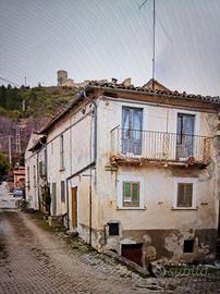 A Bominaco, "città d'arte", frazione di Caporciano (L'Aquila), si propone la VENDITA di una CASA RURALE su tre piani e affacciata sulla piazza del borgo medievale, situata all'incrocio di via Bagno e via Madonnella.