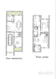 Come si evince dalle planimetrie allegate, l'edificio presenta al piano terra/primo un ingresso/soggiorno di ampia metratura, cucina, disimpegno, due camere ed un bagno. Al piano seminterrato è presente un'autorimessa, una cantina/locale caldaia, una tavernetta ed un bagno/lavanderia.
