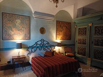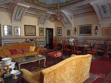 La proprietà è disposta su due piani ed un area esterna adibita a giardino. Al piano terra sono presenti l'ingresso principale, una sala degli affreschi, una sala della caccia, un grande salone ed una cucina. Nel primo piano troviamo n° 2 sale da bagno, n° 2camere da letto, un disimpegno, un salone ed un salone delle feste.