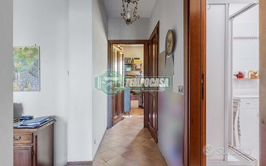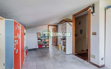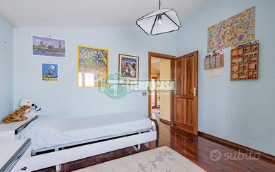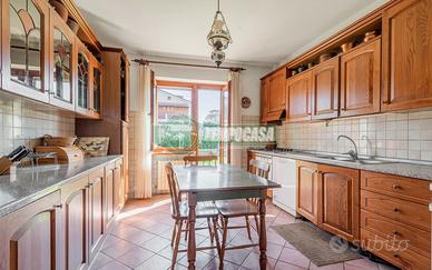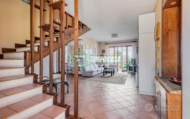 La villa si sviluppa su tre piani, con un ampio giardino privato di 1100 mq che circonda l'intera proprietà, perfetto per trascorrere momenti di relax all'aperto, organizzare eventi o coltivare un orto. Il piano terra è dedicato alla zona giorno, composta da un grande soggiorno luminoso, una cucina spaziosa, due camere e un bagno con doccia. Al primo piano si trovano tre camere da letto, ciascuna con ampie finestre che offrono una vista sul giardino, una affaccia anche su un terrazzino, e due bagni. Il piano seminterrato, ad oggi allo stato grezzo, ha una metratura di circa 90 mq. Una parte del piano seminterrato può essere utilizzato come box auto mentre l'altra parte come deposito.
