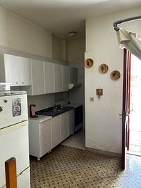 Vendita tre vani con giardino, condizionatori inverter di recente installazione, infissi con zanzariere, soggiorno con cucina a vista, una sola camera da letto grande, disimpegno, bagno.
