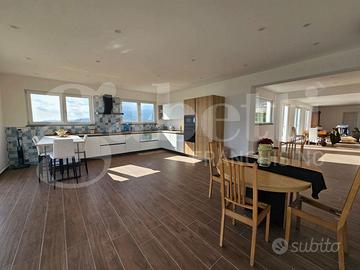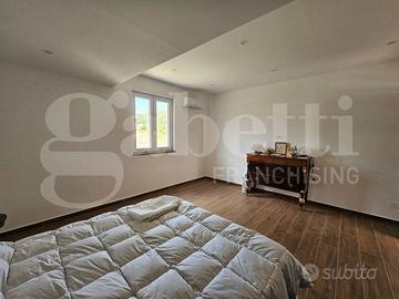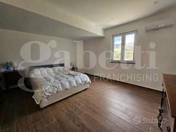 Si sviluppa su una proprietà privata di circa 5.000 mq, recintata da cancello e con accesso carrabile; l'abitazione si sviluppa su due livelli con una composizione interna funzionale ed elegante. L'ingresso è ampio e luminoso e conduce all'accogliente salone con ben tre aperture sul terrazzo a livello; la cucina è grande e soleggiata, i bagni sono due, dotati di box doccia, lavatrice, termoarredo elettrico e finestre, le camere da letto sono due, spaziose ed accoglienti; al piano superiore una confortevole mansarda più che abitabile, arricchita da ulteriore spazio da poter utilizzare come deposito e da un terzo terrazzo a livello. Infine, la casa vanta un grande locale cantinato di circa 250 mq, con accesso sia dall'interno che su strada, ideale come locale di sgombero o anche per progettare una suggestiva taverna, sfruttando le pietre rustiche a vista dell'antica struttura.