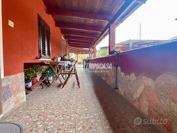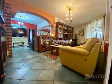 Nella prima parte, al piano terra è presente un ampio ingresso che ci collega al salone di ca. 25mq con inserto camino a pellet, cucina abitabile, ripostiglio/dispensa, un bagno con doccia ed una prima camera da letto matrimoniale.