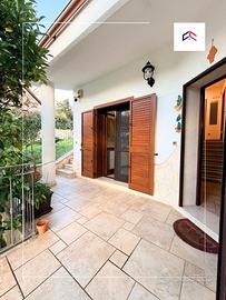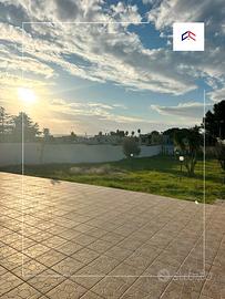 un grande patio coperto di 30mq perfetto per accogliere amici e parenti o semplicemente godersi l'atmosfera marina e un terrazzo di 30mq dalla quale potrai godere una splendida vista panoramica con il mare a farle da sfondo, comodo box auto di 30mq con serranda radiocomandata e locale tecnico con cisterna interrata.
