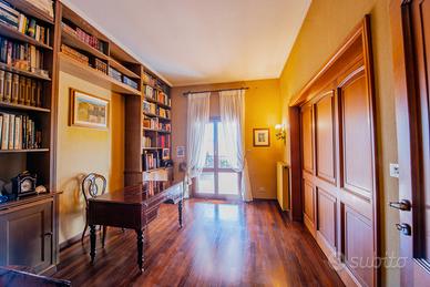 Sassari, Via Silki, progettata dall'architetto Antonio Simon Mossa , la Vanacore Immobiliare propone in vendita una villa indipendente circondata da un ampio giardino di circa 1200 mq, immersa nella quiete di San Pietro. L'immobile internamente si sviluppa su circa 360 mq ed è situato su un lotto di oltre 2000 mq. Comprensivo di area edificabile di circa 700-800 mq, con cubatura disponibile di 1000 mc sfruttabile fino a 7,5 metri di altezza. Un vialetto conduce all'ingresso principale, accessibile tramite scalinata che introduce all'atrio d'ingresso. Da qui si accede agli ambienti principali, caratterizzati da finiture e materiali di pregio, come pavimento in ceramica realizzato a mano. La zona giorno spaziosa e accogliente, è rifinita in parquet e arricchita da un grande camino. Adiacente al soggiorno, separabile con porta in legno scorrevole, si apre un elegante studio con libreria su misura. Entrambi gli ambienti accedono a una grande terrazza coperta. La sala da pranzo, accogliente e anch'essa dotata di caminetto, si apre su un portico posteriore con accesso sul giardino. Dalla camera da pranzo si accede alla cucina tramite un ambiente intermedio con apertura sul giardino. La cucina, separata e funzionale, è collegata a due camere e a un bagno di servizio. La zona notte, rifinita in elegante parquet a spina ungherese, si trova nell'ala opposta della casa. La camera padronale dispone di uscita su un ampio portico, spogliatoio con armadi a muro e un ampio bagno en suite. Completano la zona notte un ulteriore bagno con doccia e altre due spaziose camere matrimoniali, anch'esse con armadi a muro, una con accesso al porticato esterno. Dal disimpegno vicino alla cucina si accede al piano seminterrato, dove troviamo una grande cantina/dispensa, una centrale termica, un ambiente con caminetto e un ampio garage con portellone basculante. La proprietà dispone di due cancelli d'ingresso. Uno pedonale e uno con accesso carrabile e cancello elettrico.