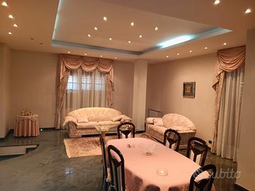 Nel suggestivo contesto residenziale di Viagrande, immersa nella tranquillità e circondata dal verde, proponiamo in vendita una splendida villa singola accorpata, disposta su due livelli, ben tenuta, luminosa e con un piacevole panorama aperto. La villa si sviluppa con ambienti ampi e ben distribuiti. Al piano terra troviamo grandi e accoglienti saloni, ideali per ricevere e vivere pienamente la zona giorno, serviti da un comodo disimpegno, un servizio, una spaziosa cucina e altri due vani versatili, perfetti come studio, soggiorno aggiuntivo o zona relax. Una comoda scala interna conduce al piano superiore, dedicato alla zona notte, composto da disimpegno e tre ampie camere da letto, tutte servite da balconi perimetrali su tre lati, che conferiscono grande luminosità agli ambienti e permettono di godere di una splendida vista panoramica. Il valore aggiunto della proprietà è rappresentato dagli spazi esterni: al piano terra troviamo un ampio terrazzo con patio, perfetto per momenti di convivialità all'aperto, una piscina privata e un terreno di circa 300 mq curato con prato inglese, ideale per chi desidera vivere gli spazi esterni in totale relax e privacy. La villa dispone inoltre di ingresso indipendente e della possibilità di posto auto interno, garantendo comfort e praticità. Soluzione ideale per chi è alla ricerca di una residenza esclusiva, luminosa e immersa in un contesto tranquillo, senza rinunciare alla comodità dei servizi e alla bellezza del panorama. Ottime condizioni - pronta da vivere Contattaci per maggiori informazioni o per prenotare una visita.
