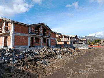 Viagrande/Trecastagni- stupendo cantiere di ville Bifamiliari in costruzione 5 vani( 130 mq) su 2 livelli, Piano terra composto da cucina-salone, 1 camera, wc e lavanderia; Primo piano composto da 3 camere da letto tutte balconate e wc con balcone; Con giardino di 300 e 350 mq, panorama mozzafiato, cappotto termico, fotovoltaico, solare termico, impianto di riscaldamento autonomo, consegna prevista Giugno 2026. Prezzo di richiesta 275.000 euro classe energetica A/4. Per informazioni o appuntamenti contattare la Melimmobiliare