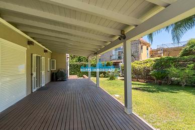 PIANO TERRA INDIPENDENTE con giardino e dependance VENDITA - VIALE DELLE SIRENE, MONDELLO - a pochi passi dal lungomare Valdesi In una delle posizioni più esclusive di Mondello, precisamente in Viale delle Sirene, proponiamo in vendita un delizioso piano terra indipendente con giardino e dependance immersa nel verde, a pochissima distanza dal Lungomare di Valdesi. La proprietà gode di massima riservatezza, poiché non è visibile dalla strada e si raggiunge tramite accesso privato. Indipenente piano terra con una superficie commerciale di circa 110 mq. È circondata da un ampio giardino curato, dove si inserisce un grande patio in legno coperto di circa 40 mq, ideale per momenti di relax e convivialità all'aperto. All'interno, l'immobile si compone di un soggiorno, una cucina separata, due camere da letto, doppi servizi e una zona armadi a servizio della camera patronale. L'abitazione è stata ristrutturata circa 15 anni fa e si presenta in ottimo stato di conservazione, dotata di infissi in vetro camera, climatizzazione, riscaldamento autonomo e sistema di allarme. Completano la proprietà tre posti auto interni e una dependance prefabbricata in legno, utilizzabile come spazio hobby, studio o camera ospiti. Soluzione perfetta per chi desidera vivere tutto l'anno o trascorrere le vacanze in uno dei contesti più ambiti e riservati della zona di Mondello. Classe energetica: G Prezzo su richiesta EURO580.000, 00.Tel oppure il