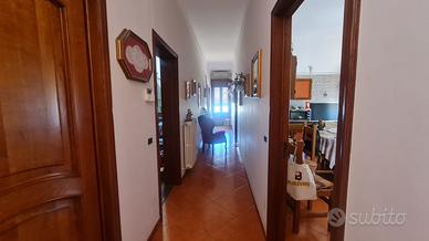 L'immobile al piano terra rialzato è composto da una grande zona living con due porte finestra che accedono all'ampia veranda di 50 mq che costeggia sui tre lati la proprietà, al piano terra troviamo la cucina abitabile separata, una camera da letto matrimoniale, un vano deposito e il bagno; sia dalla cucina che dalla camera da letto è possibile accedere alla veranda esterna;