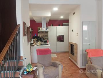 La villa si compone al piano terra di grande salone soggiorno con open space sulla cucina, e di un grande locale cantina. Al primo piano due camere da letto, due servizi, uno studio, una cucina e una sala soggiorno. Ad arricchire la costruzione un terrazzo a livello.