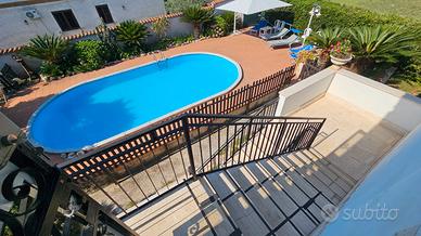 In un contesto tranquillo e riservato, immersa nel verde, proponiamo in vendita una splendida villa , ideale per due nuclei familiari o per chi desidera ampi spazi abitativi in un'unica soluzione. La proprietà si sviluppa su due livelli indipendenti: Piano Terra 145 mq: Ampio doppio salone con camino, luminoso e accogliente Cucina abitabile, perfetta per la vita quotidiana 3 spaziose camere matrimoniali 2 bagni Primo Piano 136 mq: Grande doppio salone con camino Cucina abitabile 3 camere matrimoniali 2 bagni con box doccia Ogni unità è autonoma e presenta finiture curate e funzionali. La villa è dotata di: Climatizzazione in tutti gli ambienti Infissi in PVC con doppio vetro camera Grate di sicurezza in ferro su tutte le finestre Esterni da sogno: La villa è circondata da un parco privato di circa 2.000 mq, completamente recintato, che garantisce privacy e relax. All'esterno troviamo: Una splendida piscina 10x5 m, ideale per le giornate estive Un'ampia veranda coperta con portico, perfetta per pranzi e cene all'aperto Box auto di 40 mq con spazio per più veicoli o uso come deposito Soluzione perfetta per famiglie numerose. Una villa versatile, immersa nel verde, pronta da vivere. Per informazioni o per prenotare una visita, non esitare a contattarci.