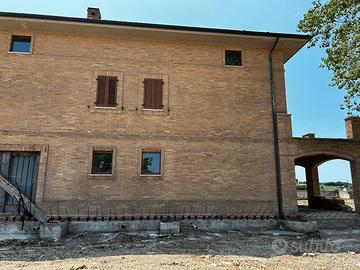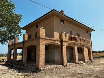 Si propone in vendita una villa di nuova costruzione, situata nella cornice delle meravigliose colline maceratesi (comune di Montecassiano). La posizione garantisce una visuale a 360 gradi della campagna circostante, fino al monte Conero. È possibile, infatti, raggiungere in poco tempo la costa e, in particolare, la rinomata riviera del Conero, famose per le spiagge cristalline certificate dalla bandiera blu. La proprietà è così composta: abitazione principale su tre piani (villa), dependance su un unico piano e corte di 1750 mq. Al piano terra è presente uno spazio predisposto per il garage. Tutta la proprietà è delimitata da recinsione in muratura e tutti gli stabili sono di nuova costruzione. L'abitazione principale ha una superficie calpestabile di 502 mq, di cui 54 attinenti al portico al piano terra e 66 relativi ai balconi del secondo e terzo piano. Il passaggio tra un piano e l'altro è garantito da una scala a chiocciola sempre illuminata grazie alla presenze di finestre. Al primo piano è presente il riscaldamento a pavimento. Tutta l'impiantistica, elettrica e idraulica, è stata terminata e testata. Resta da effettuare la scelta delle finiture estetiche. La dependance ha una superficie calpestabile di 80 mq, monopiano, composta da un salone con impianti predisposti per l'allaccio della cucina, del bagno e della camera da letto. La zona in cui è sita la proprietà è vicina a borghi di interesse storico culturale, consente di raggiungere comodamente la costa e, in estate, risulta arieggiata per la maggior parte del tempo.