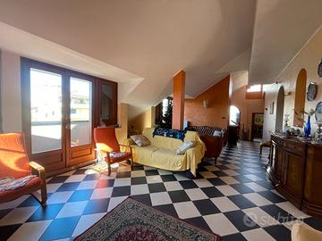 Primo Piano: salone doppio, cucina abitabile con camino, tre camere da letto, disimpegno, tre servizi, ripostiglio, terrazzo di 15 mq e quattro balconi per un totale di 30 mq.