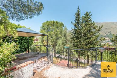 La villetta dispone anche di un piano primo raggiungibile sia dall'interno che dall'esterno tramite scala: qui troviamo un terrazzo panoramico di circa 80 mq, perfettamente vivibile, dotato di angolo cottura e lavabo, ideale per pranzi e cene all'aperto, feste in famiglia o semplicemente per godersi la tranquillità delle serate estive.