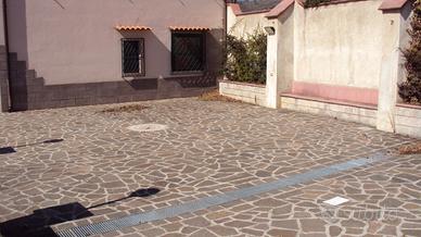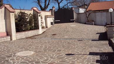 Anche l'esterno della villa è stato oggetto di ristrutturazione con pavimentazione in porfido del grande piazzale, rifacimento delle mura perimetrali di recinzione ed installazione di lampioni per l'illuminazione esterna.