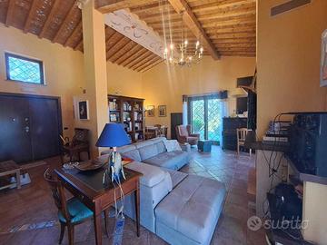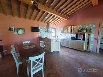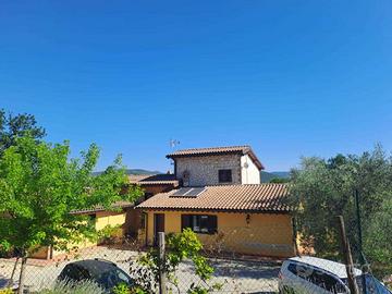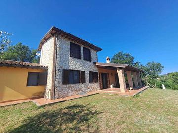 (Riferimento: Rif18Bis) AMELIA - Nella prima campagna amerina, in posizione collinare, proponiamo in vendita una bellissima villa in perfetto stato con terreno recintato. Costruita nel 2008 La proprietà si sviluppa su 2 livelli. Al piano terra veniamo accolti da un ampio soggiorno con cucina abitabile e camino, 2 bagni con doccia, 1 camera patronale con bagno privato e cabina armadio, 2 camerette, lavanderia e ripostiglio. Attraverso la scala interna si accende al piano superiore dove troviamo un'altra camera di ampia metratura. Tutta la zona giorno è caratterizzata dal un bellissimo soffitto con un'altezza di 4 m. Se si porge lo sguardo verso l'alto, si nota la particolarità delle travi a vista con delicate decorazioni fatte a mano che rendono l'ambiente accogliente e unico nel suo genere. Dal soggiorno e dalla cucina si accede comodamente ai due portici ideali per le cene in compagnia durante le sere d'estate o per godere del semplice relax.