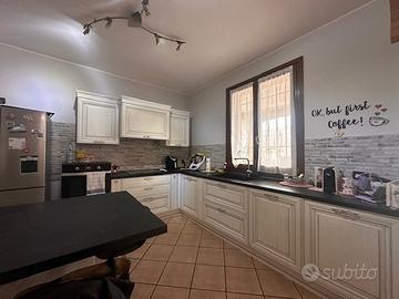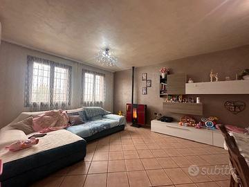 Cod.004 Bomporto frazione: in strada chiusa proponiamo porzione di casa con ingresso indipendente e giardino, portico, ampia zona giorno open space, tre camere da letto, tre bagni, lavanderia, garage doppio con cantina. Caldaia a condensazione, 6kw fotovoltaico. Ambienti ampi e luminosi. Classe energetica E. Euro 253.000