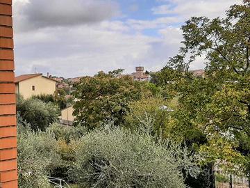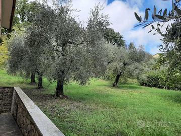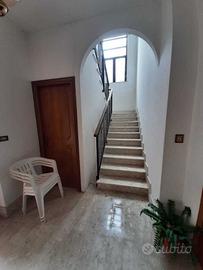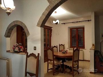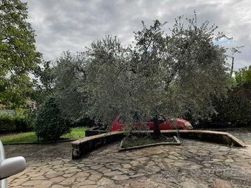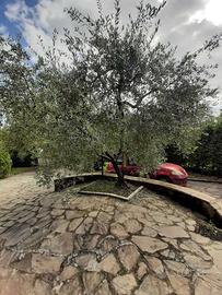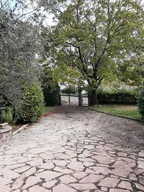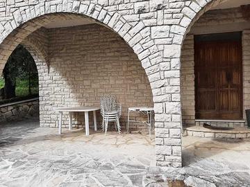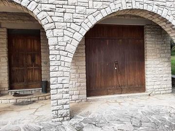 (Riferimento: Z117-1) A pochi passi dal paese ma in zona periferica vendiamo villino in cortina e pietra su due livelli con ampio giardino. Al piano terra salone doppio con camino, cucina, bagno. Adiacente un ampio garage e rimessa attrezzi. Al piano superiore due grandi camere, un bagno e un ampio salone dal quale le due finestre permettono di poter realizzare la terza camera con bagno. La terrazza panoramicissima coperta e abitabile consente di godersi la vista del paese e delle campagne circostanti con i suoi stupendi tramonti. Cancello, recinzione, raccolta acque x irrigazione, illuminazione esterna. Nel giardino di 2500 mtci sono 40 piante di olivo, un noce, nocchie e frutteto. Mt 240 residenziali. Terreno mt 2.500 terrazza di 18 mt circa. Gpl Possibilità di allaccio al metano.