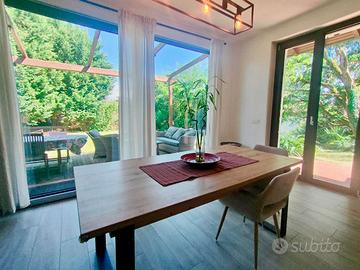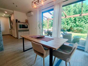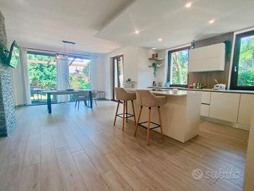 A solo 1 km dalle sponde del Lago Maggiore e del Lago di Monate, proponiamo ampia villa singola ristrutturata completamente fine 2022. L'immobile è disposto su unico livello abitativo di 220 mq ed è composto da ingresso, ampia cucina a vista con zona pranzo che accede al dehor tramite finestra scorrevole larga 4 m, ampio soggiorno con zona cinema e camino a pellet da 18 KW, disimpegno, bagno con doccia, due camere matrimoniali e camera padronale con portico, cabina armadio e bagno ensuite con doccia e vasca angolare. Al piano interrato troviamo una taverna attrezzata con camino a legno, un bagno, un'area adibita a palestra, lavanderia, locale tecnico con caldaia a condensazione e impianto fotovoltaico, cantina e box auto di 110 mq. Il giardino è circa 1300 mq tutto pianeggiante, piantumato per garantire un'assoluta privacy, dove è stato realizzata un'area BBQ con lavandino e forno per pizza. Pannelli fotovoltaici da 5,5 kw con scambio sul posto, isolamento termo acustico interno, isolamento muri perimetrali con intercapedine da 8 cm e isolamento soletta solaio da 10 cm. L'immobile è in condizione perfette. Immobile in gestione presso la sede operativa di Sesto Calende, Via San Bernardino 29 Tel. Email: immobiliare.smarthome@gmail.com RIFERIMENTO: MFBREBBIA02 CLASSE ENERGETICA: C 165,48 kWh/m2 a
