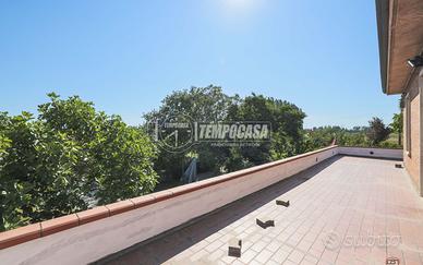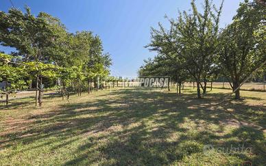 La proprietà è circondata dal terreno di proprietà interamente recintato (2700mq circa) ad oggi adibito a orto e a coltivazione di piante da frutto. Il portico di ingresso comune e il terrazzo di 65 mq