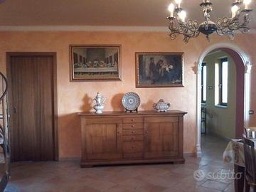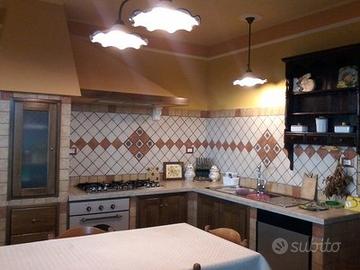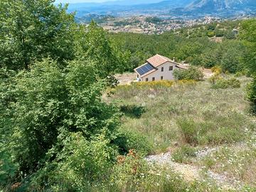 Sup. catastale di 137 mq coperti, così distribuiti: -al piano terra ampio e luminoso salone con camino René Brisach in ghisa, chiuso a vetro e con tre bocchette per l'irradiazione del calore; cucina abitabile con angolo cottura in muratura e sportelli in legno di noce; bagno con doccia; ripostiglio attrezzato; all'esterno un grandissimo porticato aperto da tre archi a sesto ribassato. -al piano primo: tre stanze da letto, un bagno di servizio, grandissimo ripostiglio sotto tetto e ulteriore rimessa sotto tetto. L'immobile è dotato di: impianto FOTOVOLTAICO da 6 kw, 3 batterie d'accumulo, colonnina per la ricarica di veicoli elettrici, impianto di riscaldamento con POMPA DI CALORE e puffer interno, scaldabagno elettrico, termoconvettori al piano terra e termosifoni in alluminio al primo piano, TUTTO NUOVO; porte scrigno scorrevoli in noce, inferriate alle finestre, inferriate apribili al portone d'ingresso ed alla porta finestra della cucina, infissi in alluminio effetto legno, praticamente nuovi, stucchi alle pareti ed ai soffitti, grande scala in ferro a chiocciola, pavimentata in lastrini di travertino; doppia fossa biologica. Intorno all'immobile una proprietà di oltre 10.400 mq, di cui circa 9000 completamente recintati, nel rispetto dei vincoli di pastorizia; alle spalle dell'abitazione è stato ricavato un ampio terrazzamento in piena roccia; all'ingresso della proprietà sono presenti un grande cancello in ferro ed un cancelletto pedonale. Immobile sostanzialmente nuovo, può essere abitato fin da subito, ideale come abitazione e come casa di vacanza. (I mobili visibili nelle foto non sono compresi.) c.ca 800 mt slm
