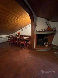 Rif:A565 (109323349) - Seano, in ottima zona residenziale, lievemente rialzata, vicina ai servizi, bella villa libera tre lati, suddivisa in 2 unità immobiliari, al piano primo nell'appartamento composto da sala soggiorno con camino, cucina, 3 camere, bagno, ripostiglio, mansarda con forno a legna e camino, terrazza con accesso al giardino; al piano terra altro appartamento da ristrutturare, suddiviso in 4 vani; completa la proprietà lo spazio esterno con i posti auto ed il giardino. - Classe: G - IPE: 175.00 kWh/mq anno