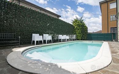VILLA SINGOLA IN PIENO CENTRO PAESE! Nel pieno centro di Cassano D'Adda, proponiamo in vendita singola unica nel suo genere, rifinita con materiali di pregio. La soluzione si sviluppa su due piani fuori terra ed un piano interrato; Al piano terra tutta la zona living formata da un ampio soggiorno ed un locale hobby entrambi rifiniti con parquet e con accesso diretto alla veranda, con pavimento in resina, riscaldata per poterla sfruttare durante la stagione invernale e con accesso diretto alla piscina interrata. Il piano terra è completato dal bagno di cortesia e dalla cucina abitabile: entrambi gli ambienti sono rifiniti in marmo. Tramite una comoda scala interna si accede alla zona notte, che è composta da tre camere da letto, un'ampia camera matrimoniale con bagno privato con accesso al balcone, un ulteriore bagno di servizio per le altre camere, tutte rifinite in parquet. Il piano seminterrato è suddiviso in locale lavanderia con accesso diretto al giardino esterno, da un locale caldaia e da un ulteriore stanza con bagno privato. Gli infissi sono internamente in legno ed esternamente in alluminio, è presente l'impianto fotovoltaico con batterie d'accumulo che permette di minimizzare i consumi della casa ed è anche presente l'impianto d'allarme. Adiacente alla piscina si possono utilizzare due posti auto. L'abitazione può essere lasciata libera nel giro di brevissimo tempo. - IPE: 319.67 kWh/mq anno