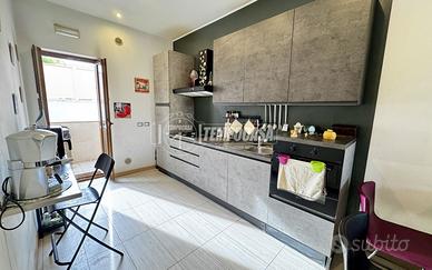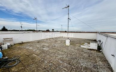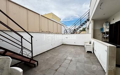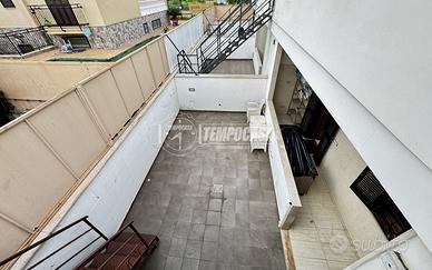 Dalla cucina si accede ad un piacevole patio interno, perfetto per gestire al meglio le attività quotidiane grazie alla presenza della zona lavanderia. Da qui parte anche la scala in ferro che conduce al terrazzo di proprietà esclusiva: uno spazio ampio e tutto tuo, ideale per creare una zona relax, prendere il sole o vivere momenti all'aperto in tutta privacy.