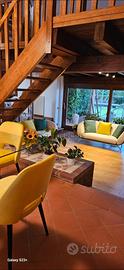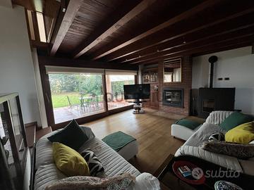 Dalla zona giorno si può inoltre godere dello splendido porticato coperto di oltre 20 mq con caminetto, il giardino è completamente recintato e piantumato di circa 1500 mq.
