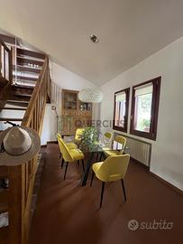 Gli interni sono caratterizzati da ambienti ampi e luminosi, con una zona giorno accogliente di 60 mq dotata di camino e arricchita da un soppalco utilizzato come studio, perfetto per lavorare, leggere o dedicarsi ai propri hobby oppure può essere trasformato come terza camera da letto. La zona notte comprende due camere da letto matrimoniali e due bagni finestrati, di cui uno di servizio e l'altro completo di box doccia.