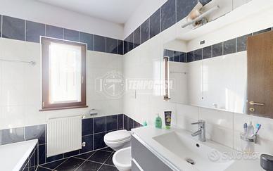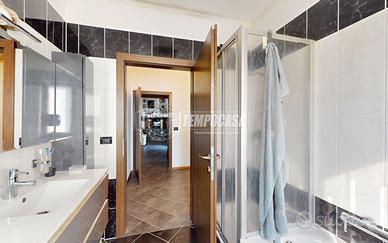 La zona notte ospita due ampie camere matrimoniali, entrambe rifinite con pavimenti in parquet, che aggiungono un tocco di eleganza e comfort. Il bagno padronale, spazioso e finestrato, è dotato di vasca da bagno e sanitari sospesi, con finiture moderne e sobrie. Completa la disposizione interna una comoda lavanderia, pratica e funzionale, con adiacente locale caldaia che dispone di predisposizione per lavabo, offrendo così un ulteriore spazio di servizio.