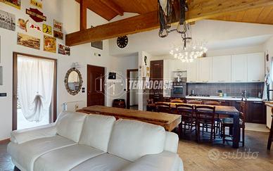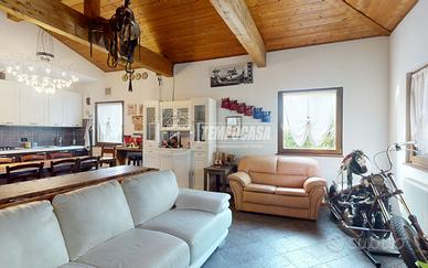 La soluzione, edificata nel 2011, si presenta in ottime condizioni, con finiture curate e materiali di qualità che uniscono comfort, eleganza e funzionalità. L'abitazione si apre su un luminoso soggiorno, caratterizzato da un camino in muratura che dona calore e accoglienza all'ambiente, rendendolo perfetto per momenti conviviali o serate rilassanti in famiglia. Adiacente al soggiorno si trova la cucina a vista, moderna e ben integrata nello spazio, pensata per coniugare praticità e convivialità.