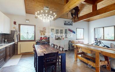 La zona giorno è impreziosita dai soffitti con travi a vista, che donano un carattere rustico ma raffinato, amplificando la luminosità e la sensazione di ampiezza degli ambienti. Gli infissi in legno con doppio vetro garantiscono un ottimo isolamento termico e acustico, mentre il cappotto esterno assicura un'elevata efficienza energetica, contribuendo a contenere i consumi e mantenere un clima ideale in ogni stagione.