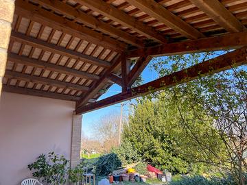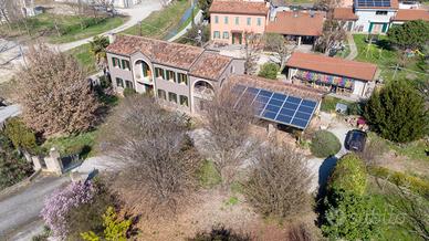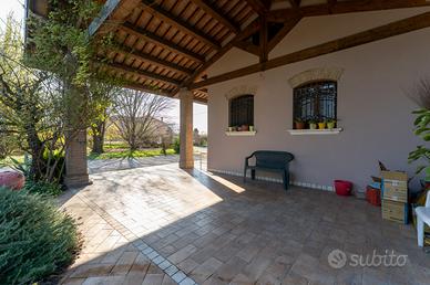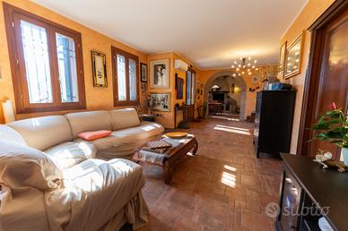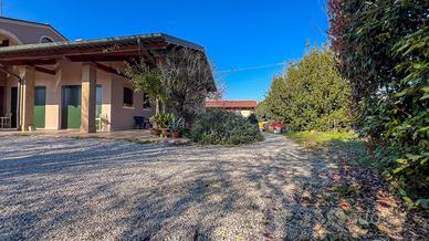 Si tratta di una splendida villa singola in puro stile veneto, con archi e colonne in mattoni faccia vista, porticato di ampie dimensioni travato in legno ed ampio giardino piantumato di ben 2.500mq!