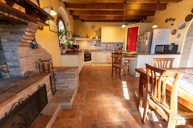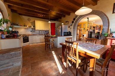 Ambienti spaziosi e luminosi caratterizzano tutta la casa, è infatti presente una splendida zona giorno, completamente orientata a sud, di ben 65mq, con grande cucina in muratura e caminetto a legna.