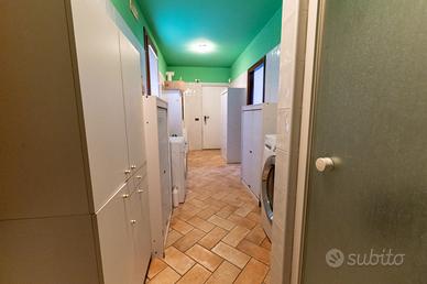 Oltre ai 3 servizi, è presente anche una comoda lavanderia, comunicante con il grande garage doppio in larghezza di 35mq, anch'esso alto 2,70mt come tutta la casa.