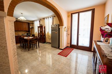 Villa singola immersa nella privacy di un magnifico giardino di quasi 5.000 mq, piantumato, circondato da siepi che garantiscono riservatezza e tranquillità! Senza rinunciare alla comodità dei principali servizi essendo ubicata a meno di 1 chilometro dal centro di Legnaro (PD) Si distingue per l'architettura tradizionale arricchita da dettagli rustici come mattoni faccia vista, portico coperto con con colonne ed eleganti tende parasole che creano suggestivi spazi esterni ideali per pranzi all'aperto o momenti di relax con amici e famiglia. L'ingresso conduce ad una luminosa zona giorno composta da soggiorno accogliente e riscaldata con caminetto a legna con uscita diretta sul porticato e cucina abitabile separata, bagno finestrato con doccia. Il reparto notte offre 3 camere da letto matrimoniali e il secondo bagno finestrato con vasca. Completa la proprietà nel piano semi interrato una comoda e pratica lavanderia dove troviamo la caldaia a pellet e una doccia, garage comunicante e un secondo garage (accatastato come ricovero attrezzi) dove è stata ricavata una taverna con cucina e caminetto a legno. Il meraviglioso giardino rappresenta uno dei punti forti dell'immobile: ideale sia per chi desidera coltivare ortaggi o fiori sia per famiglie numerose che cercano sicurezza nei giochi dei bambini oppure libertà assoluta per animali domestici. Questa soluzione è perfetta per chi cerca grandi spazi interni ed esterni senza rinunciare alla comodità della vita cittadina. Classe Energetica "E" - I.P.E 180,17 Kw mq/anno Rif. LEGCS77 Riferimento: LEGCS77 C.E.: E IPE: 180.17 kWh/mq